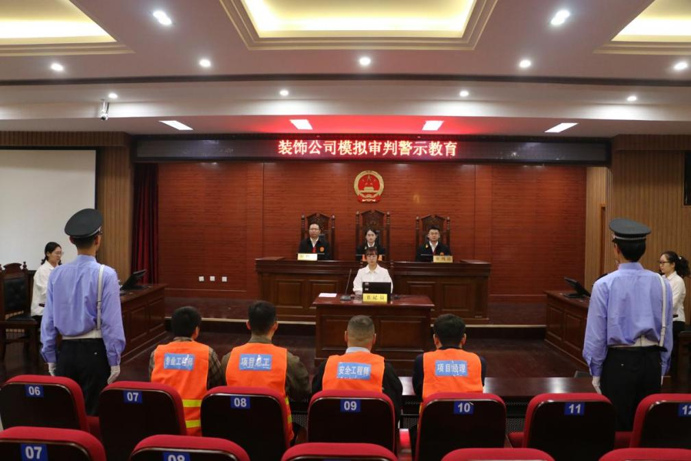 11月14日,SUNBET申博和中建八局第二建设有限公司装饰公司在J14模拟法庭联合举办模拟审判警示教育活动。
